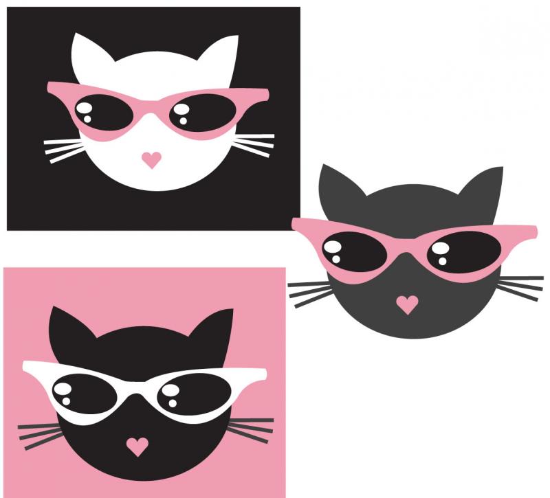 Our symbol the cat with cat-eyed glasses and Swarovski crystal rhinestone applique.